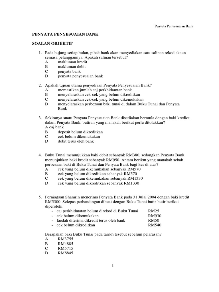 Soalan Bab Penyata Penyesuaian Bank Edit Pdf